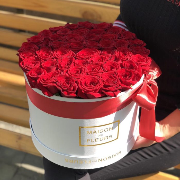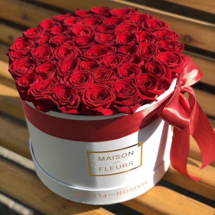 Роза красная Эквадор – 45 шт. Коробка белая – 1 шт.