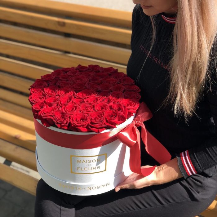 45 Красных роз в фирменной белой Коробке
