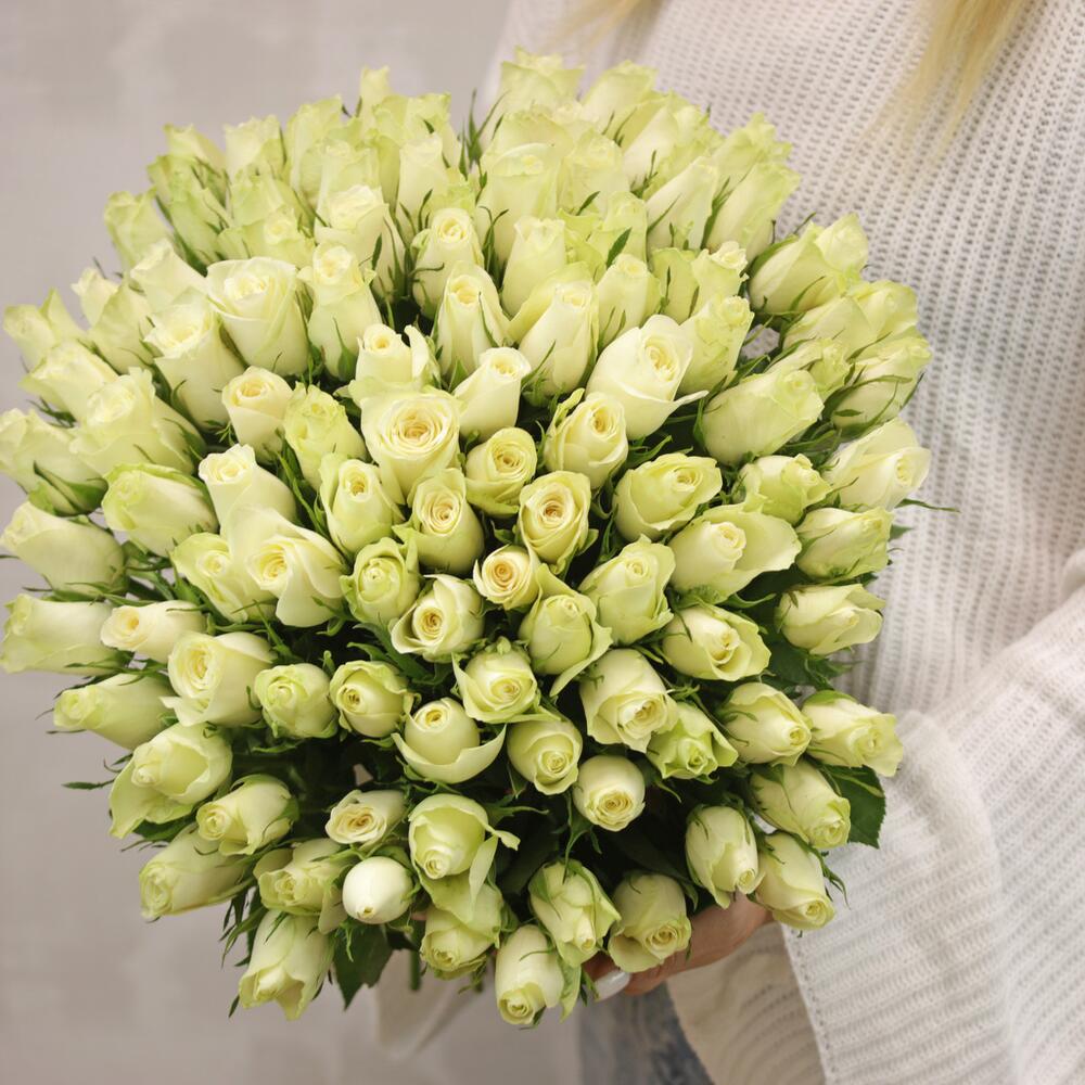 Букет из 101 белой розы 35-40 см (Кения) под ленту