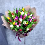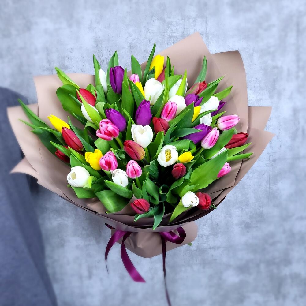 51 Разноцветный Тюльпан в ленте